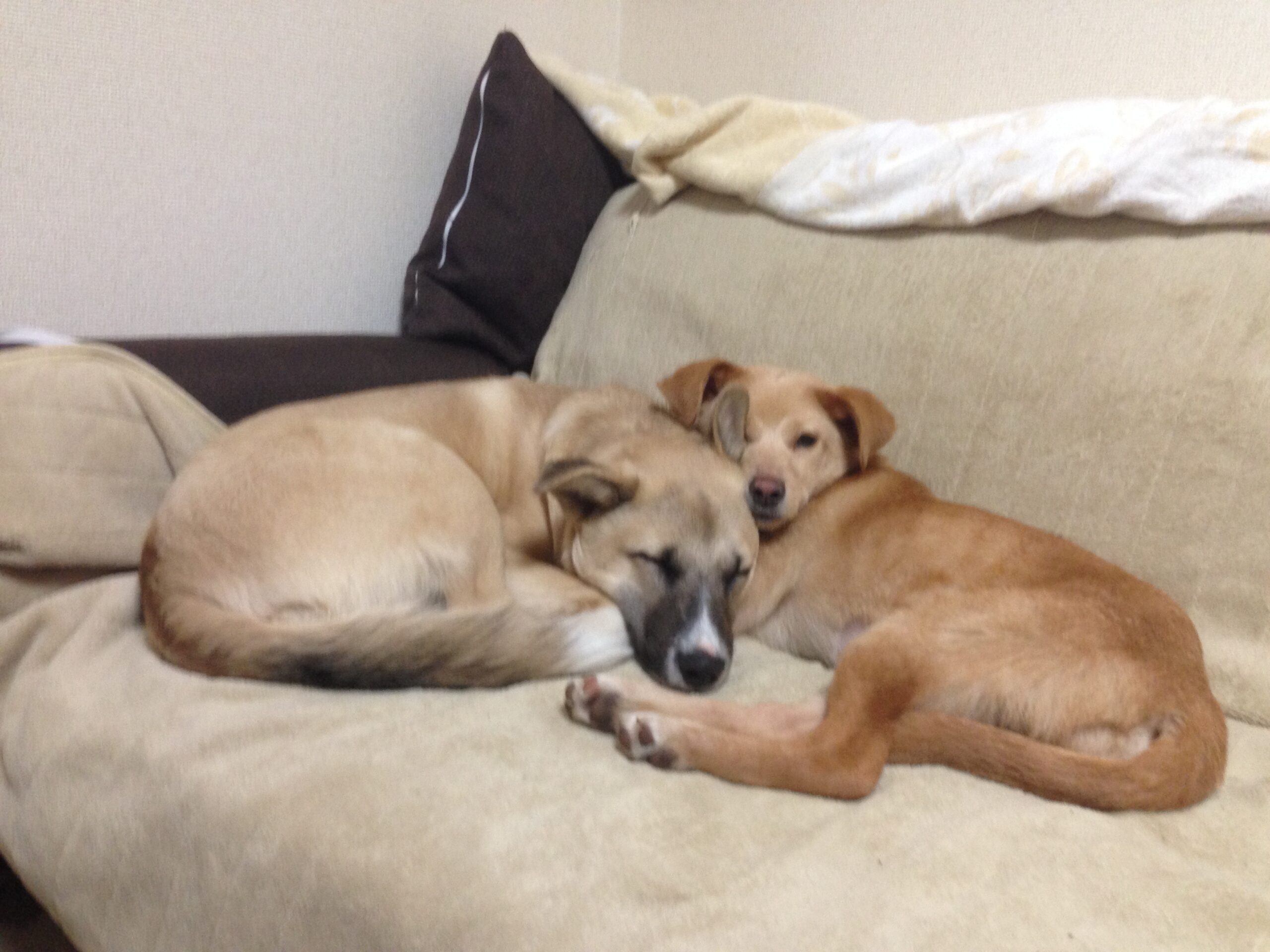 仕事デスクの後ろにソファがあって、私が仕事しているときはそのソファに2人が知らぬ間に来て寝ているのですが、ふと振り向くと、、、あらまぁ!